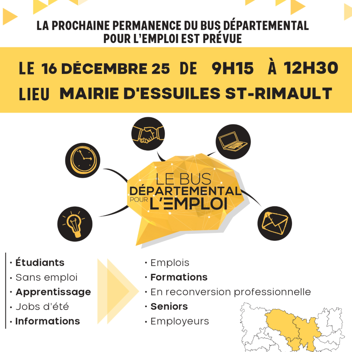 - Par voie postale à l’attention de M. Le Maire d'Essuiles - Mairie d'Essuiles - Rue Chapelle - Hameau de St Rimault - 60510 ESSUILES